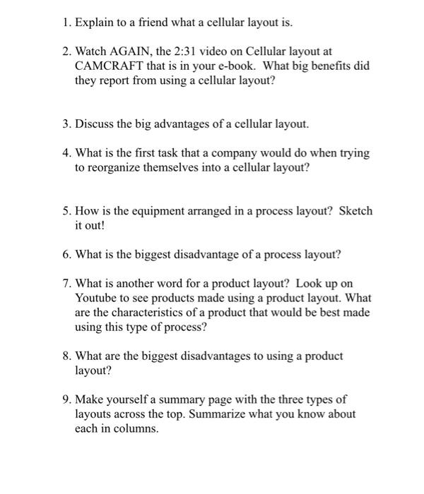 1 Explain To A Friend What A Cellular Layout Is Chegg Com - Production time is longer, requiring more goods in inventory.