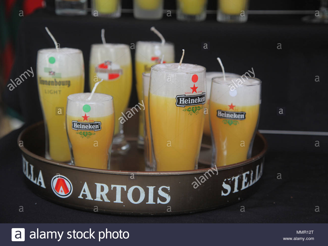 Candles In Beer Glasses Paying Homage To Popular Belgian Beers For Sale At The Market In The City Of Brussels Bruxelles Belgium Europe Stock Photo Alamy - Heineken.25 liter beer glass in its original metal container.