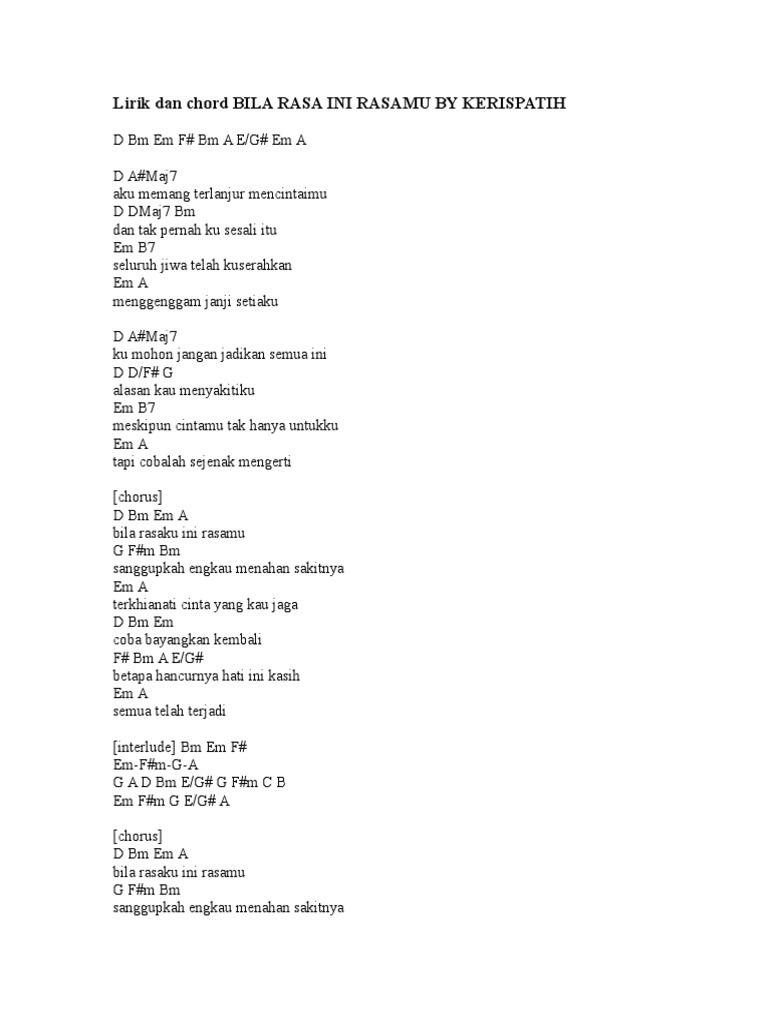 Chord Gitar Dan Lirik Lagu Bila Rasaku Ini Rasamu Kerispatih Okezone Celebrity - Indah anastasya 05 february 2020.