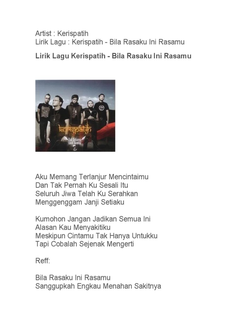Lirik Lagu Bila Rasaku Ini Rasamu By Kerispatih Gejag - Read or print original bila rasaku ini rasamu lyrics 2020 updated!